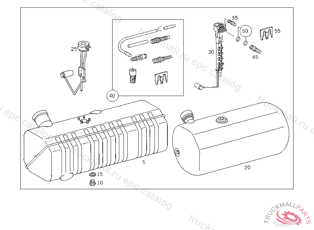 FUEL TANK , FIRST EXHAUST STOCK OF OLD PARTS UP TO IDENT NO. K 169122, Replaced By: A6524700101, +001A0005409917, +001A0115426017