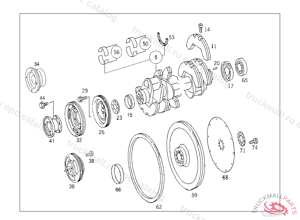 CRANKSHAFT WITH CRANKSHAFT BEARING SHELLS AND CONNECTING ROD BEARING SHELLS, EXHAUST STOCK OF OLD PARTS UP TO ENGINE 613122, Replaced By: A5420302001