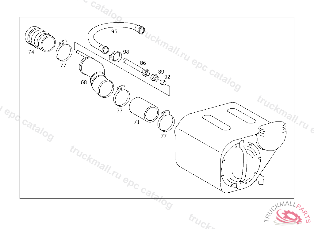 AIR INTAKE PIPE FROM AIR CLEANER TO TRANSVERSE INTAKE PIPE, FROM IDENT NO. 001445 ALSO INSTALLED ON 001348,001386,001401,001407,001408,001421-001423,001428,001433,001440