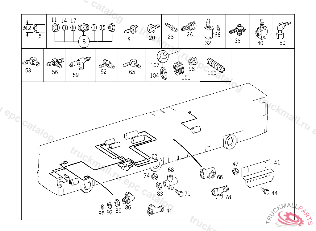 LINE FROM FOUR-CIRCUIT PROTECTIVE VALVE TO AIR RESERVOIR 9X12 MM, LENGTH AVAILABLE 3000 MM