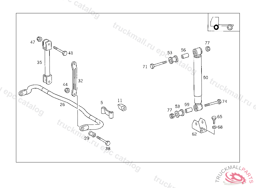 RUBBER MOUNTING FRONT SPRINGS WITH TORSION BAR TO FRONT AXLE