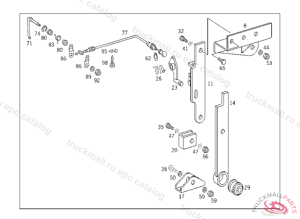 SPRING LEVER TO CAB, FOR USE WITH SHORT VERSION OF MERCEDES-BENZ CAB