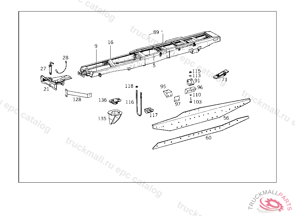 SCREW REAR CROSS MEMBER AND GUSSET PLATES TO SIDE MEMBERS M 14X48
