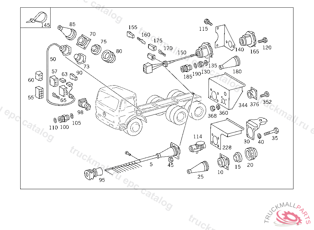 CABLE HARNESS FROM CONNECTION POINT BEHIND CAB TO TRAILER PLUG SOCKET