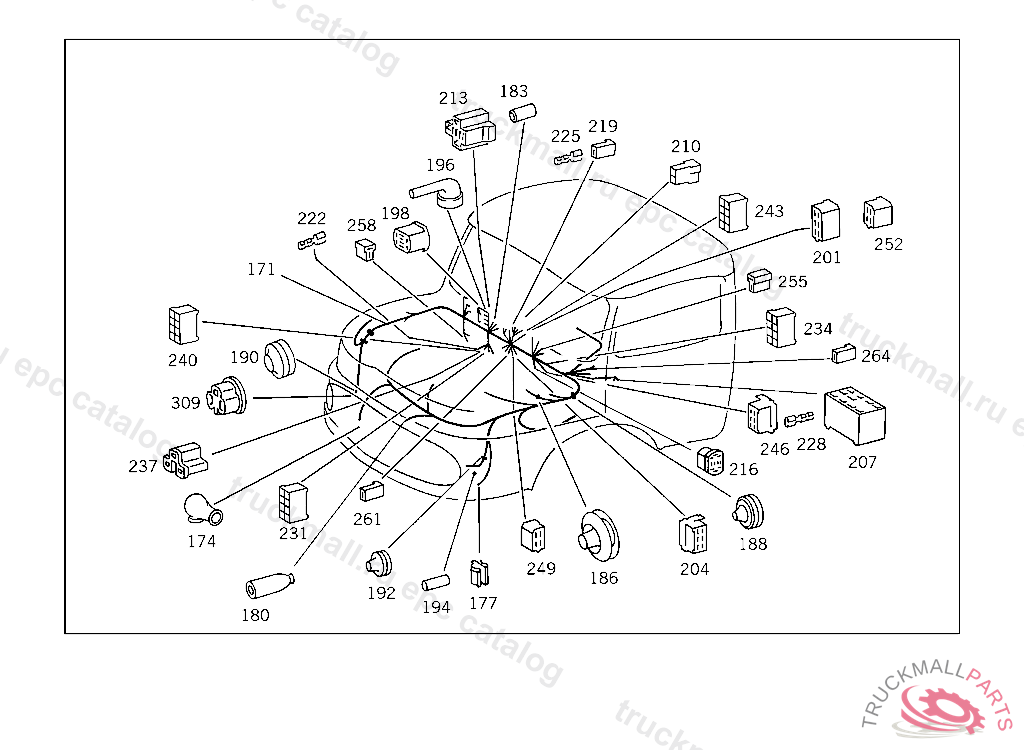 PIN BUSHING HOUSING. PLUG HOUSING FROM CHASSIS/CAB CONNECTION POINT TO TACHOGRAPH