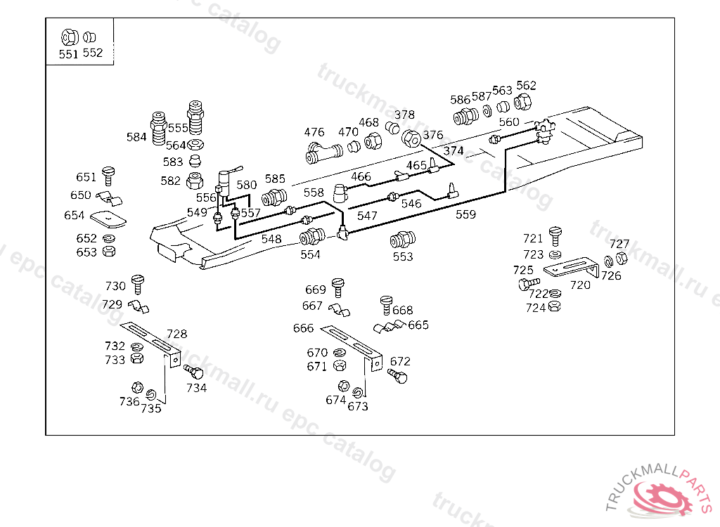 CLAMP BRAKE LINE TO SIDE AND CROSS MEMBERS