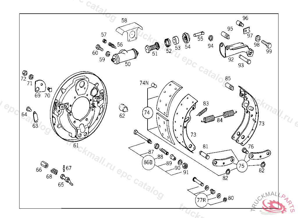 REPAIR KIT BRAKE SHOE SHACKLE, UP TO CHASSIS 910369 ALSO INSTALLED ON 500001-501455,FROM CHASSIS 910370 AND 501456-599999 SEE SPARE PARTS LIST 103
