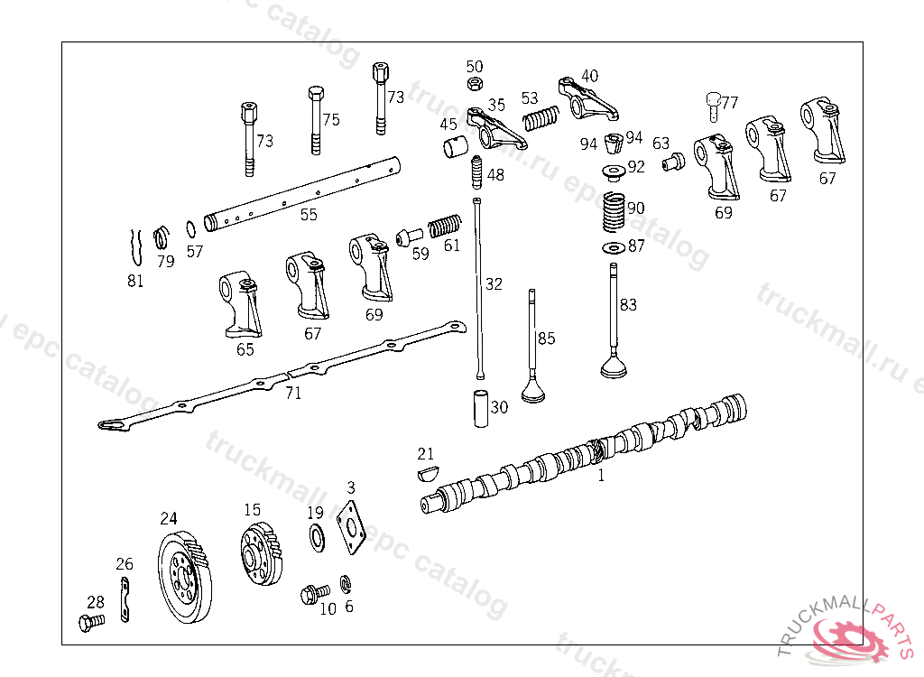 CAMSHAFT , UP TO ENGINE 470359 YEAR OF MANUFACTURE 1977 IN THE CASE OF CAMSHAFT-DRIVEN AIR COMPRESSOR,ALSO ORDER: 352 130 04 16 CONNECTING ROD,352 131 25 33 PARTS KITBEARING SHELLS