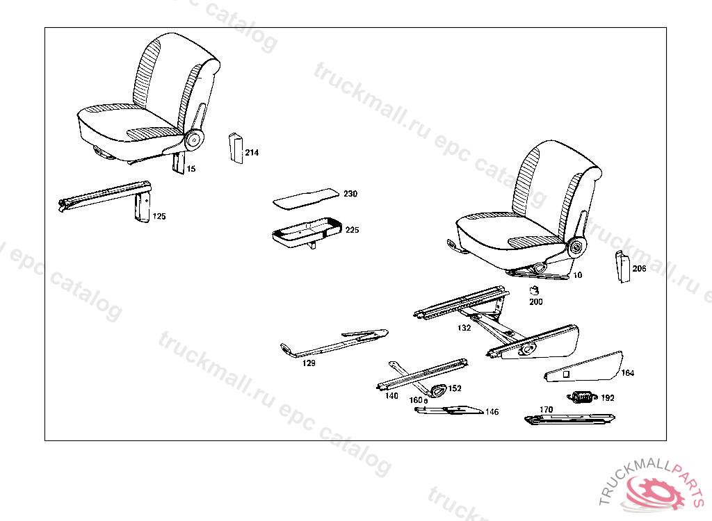 FRONT SEAT RIGHT, 015FROM CHASSIS 002131 STATE COLOR AND CHASSIS NO. WHEN ORDERING 016 UP TO CHASSIS 000924, 018 UP TO CHASSIS 000263 WHEN ORDERING, PLEASE STATE WHETHER FRONT SEAT BACKREST SHOULD BE MADE READY FOR INSTALLATION OF HEADREST