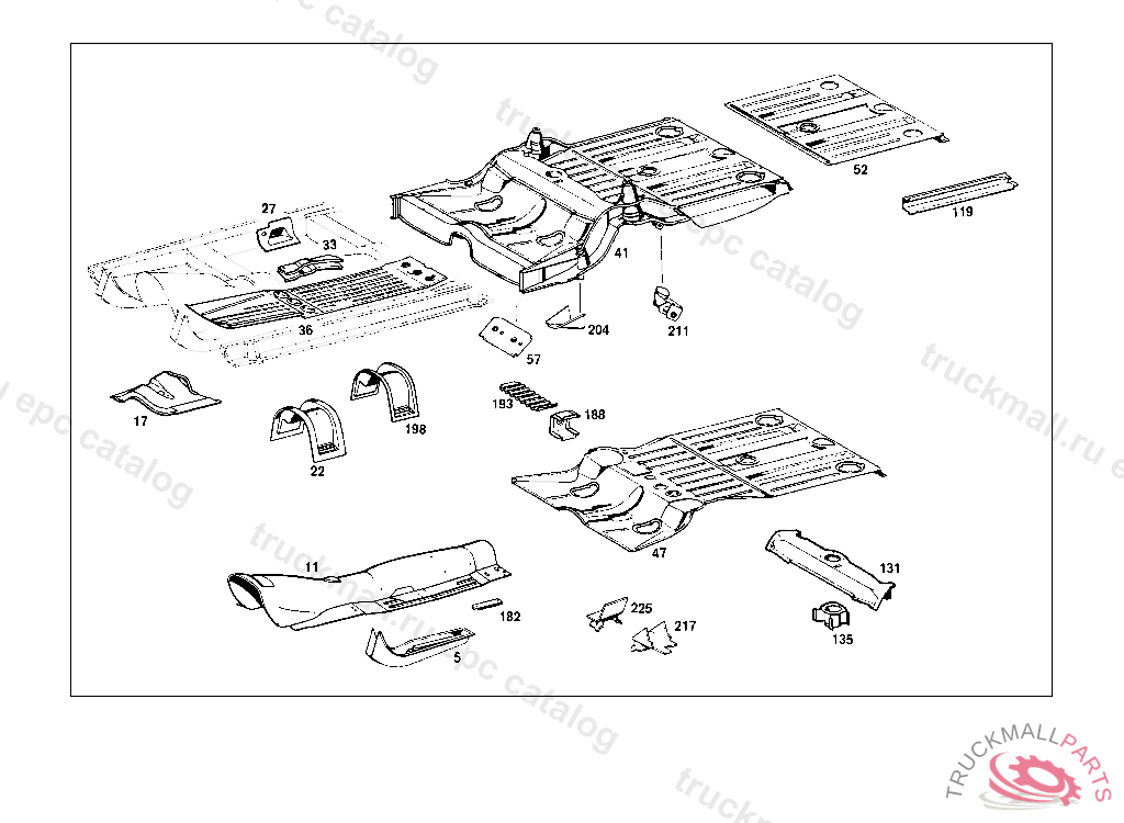 FLOOR RIGHT, 000,001,004,010 FROM CHASSIS 130558,100,101,104,110 FROM CHASSIS 225648