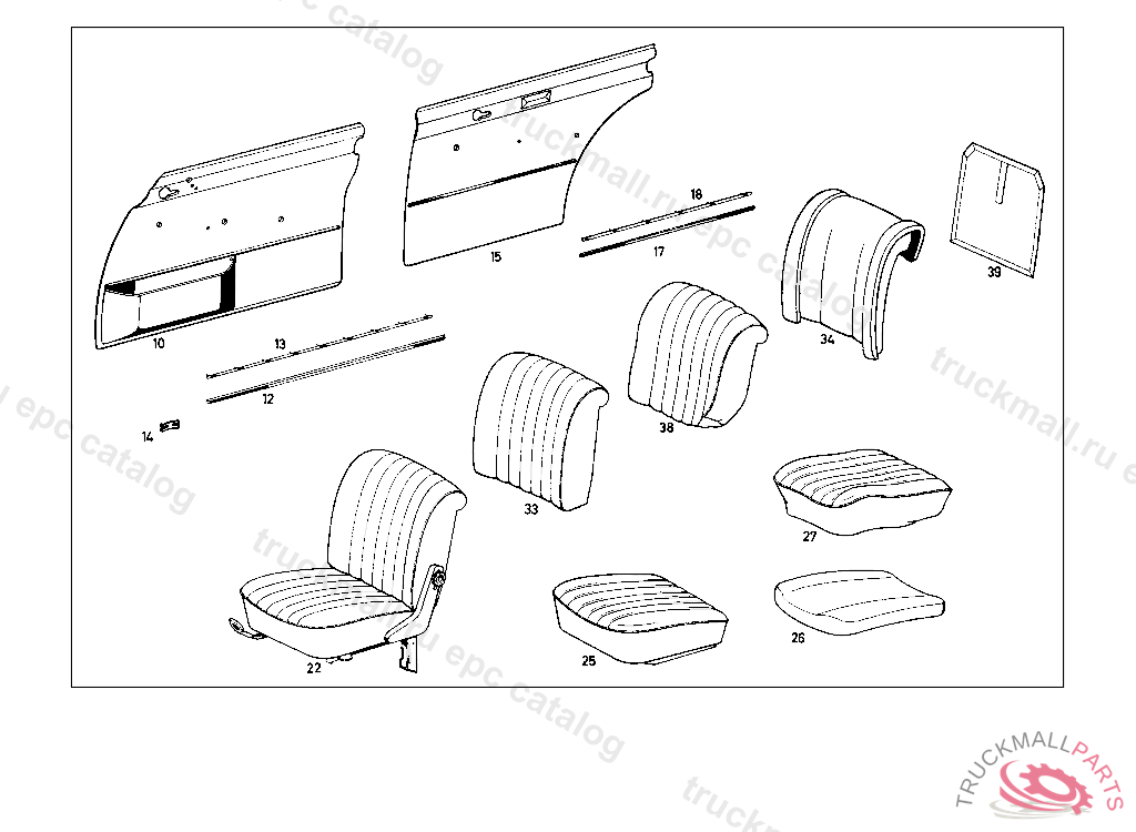 SEAT CUSHION LEFT, STATE COLOR NUMBER WHEN ORDERING FROM CHASSIS:110.010 008322-072907110.110 011549-113962111.010 030695-052441