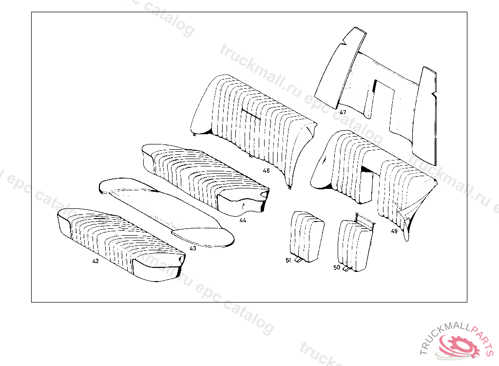 SEAT CUSHION IMITATION LEATHER, SEMI-FLUTED,RIGHT, 010 UP TO CHASSIS 008321, 110 UP TO CHASSIS 011548