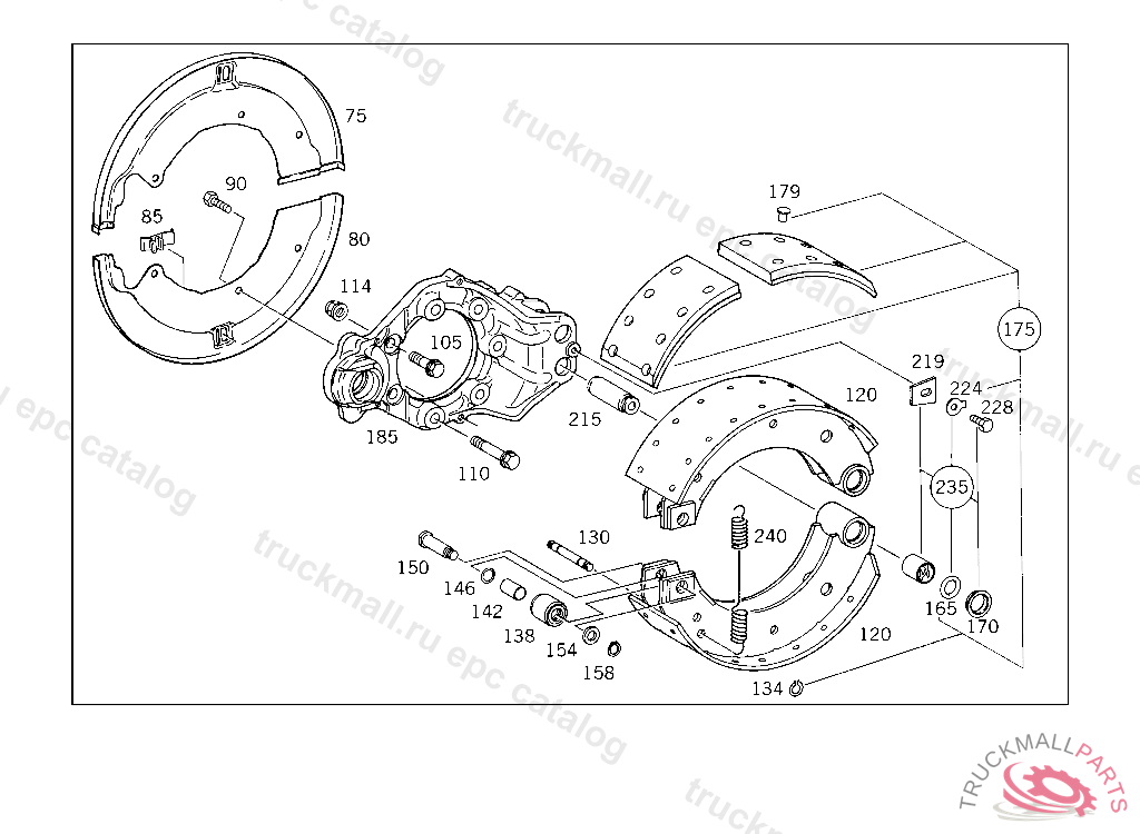 BRAKE SHOE , EXHAUST STOCK OF OLD PARTS NUMBER FIRST UP TO FRON AXLE D 027673,E 092867,G 009579, Replaced By: A3934202419