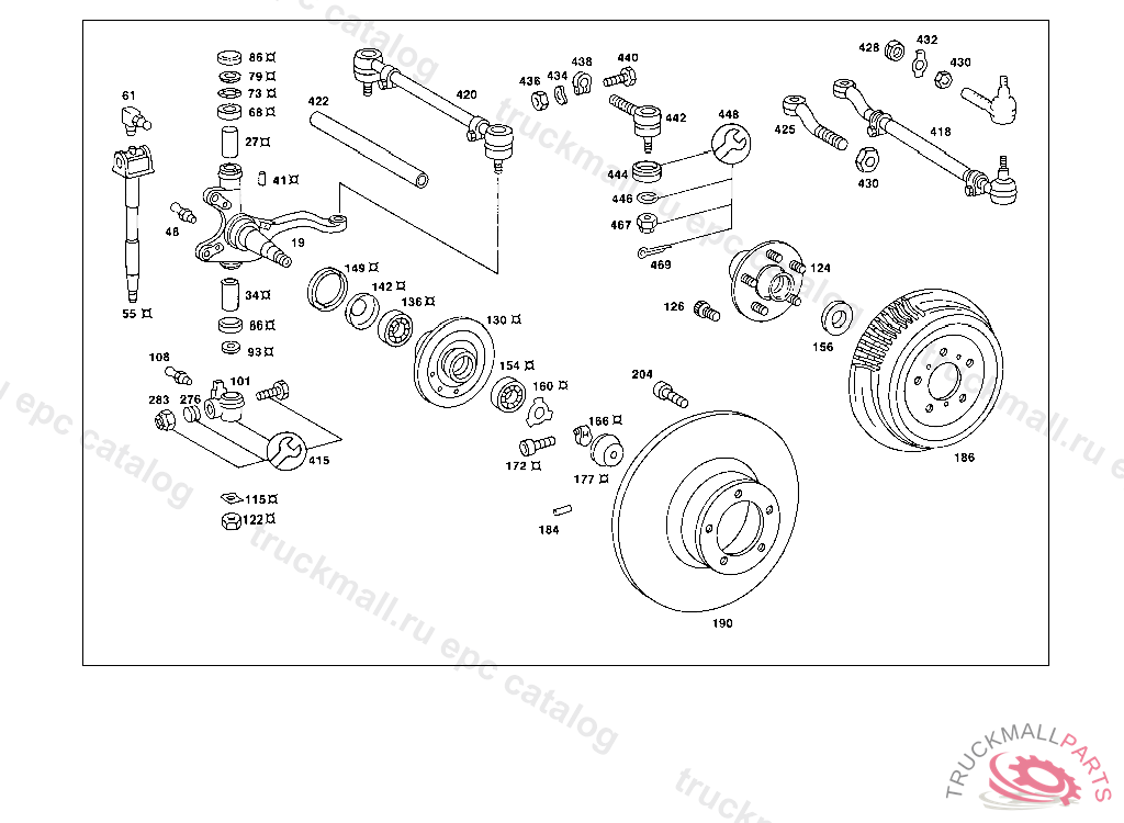 STEERING KNUCKLE LEFT TO FRONT AXLE WITH DISC BRAKES, 010,10/50,12/52 FROM CHASSIS 048977 ALSO INSTALLED ON,SEE FOOTNOTE 24,010,20/60,22/62 FROM CHASSIS 049091 ALSO INSTALLED ON 04 6334,048382,048491,012 FROM CHASSIS 070638 012 UP TO CHASSIS 094381 ALSO INSTALLED ON 103498-103884