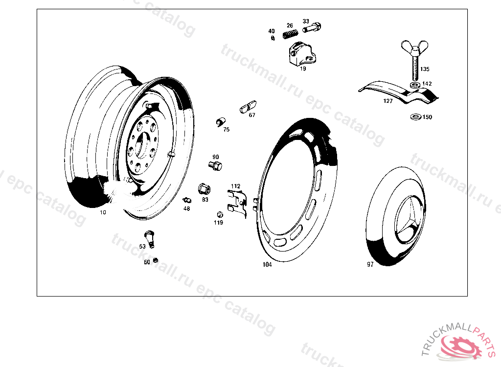 SCREW SPARE WHEEL TO BRACKET, ON SPECIAL REQUEST FOR 6.50-15 TIRES OR 7.00-15 TIRES,RESP. 010 UP TO CHASSIS 009512,012 UP TO CHASSIS 019761