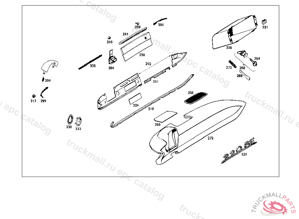 PANELLING AT INSTRUMENT PANEL BELOW GLOVE COMPARTMENT LID, 010 FROM CHASSIS 013119,012 FROM CHASSIS 026643