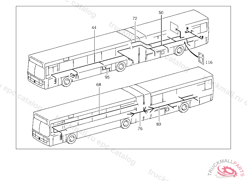 CABLE HARNESS FROM REAR ELEC.COMPMT.PLUG-CONNECT. TO FRONT CARRIAGE ARTICULAT.PLUG-CONNECT.