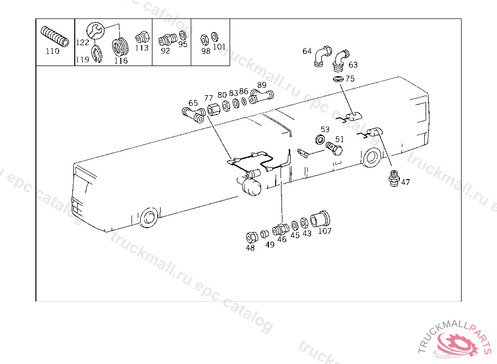 LINE (COILED TUBE), TO TRAILER BRAKE LINE COUPLING 1 X 8 + 2 X 12, 270 MM