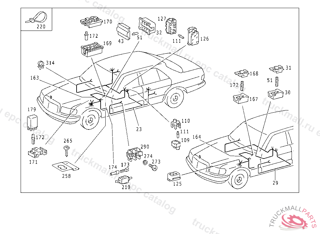 ELECTRIC CABLE FROM MAIN FUSE BOX TO FRONT AND REAR DOOR WINDOW REGULATORS, 126.021 004409 126.022,023 015515 126.032,033 006575 126.036 005737