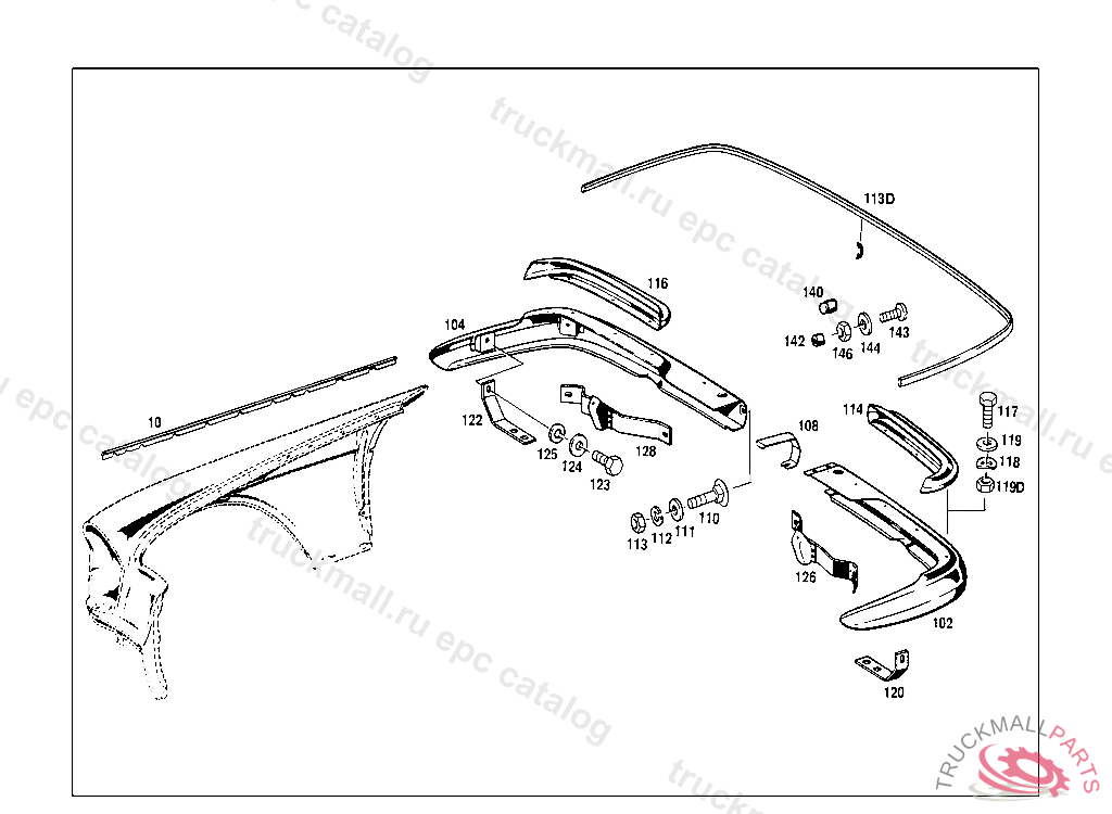 REAR BUMPER FACE BAR REAR RIGHT, FROM CHASSIS: 111.024,025 003545 ALSO INSTALLED ON 003479,003498,003515-003519,003521,003522,003524-003530,003532-003534,003536-003543. 111.026,027 000001
