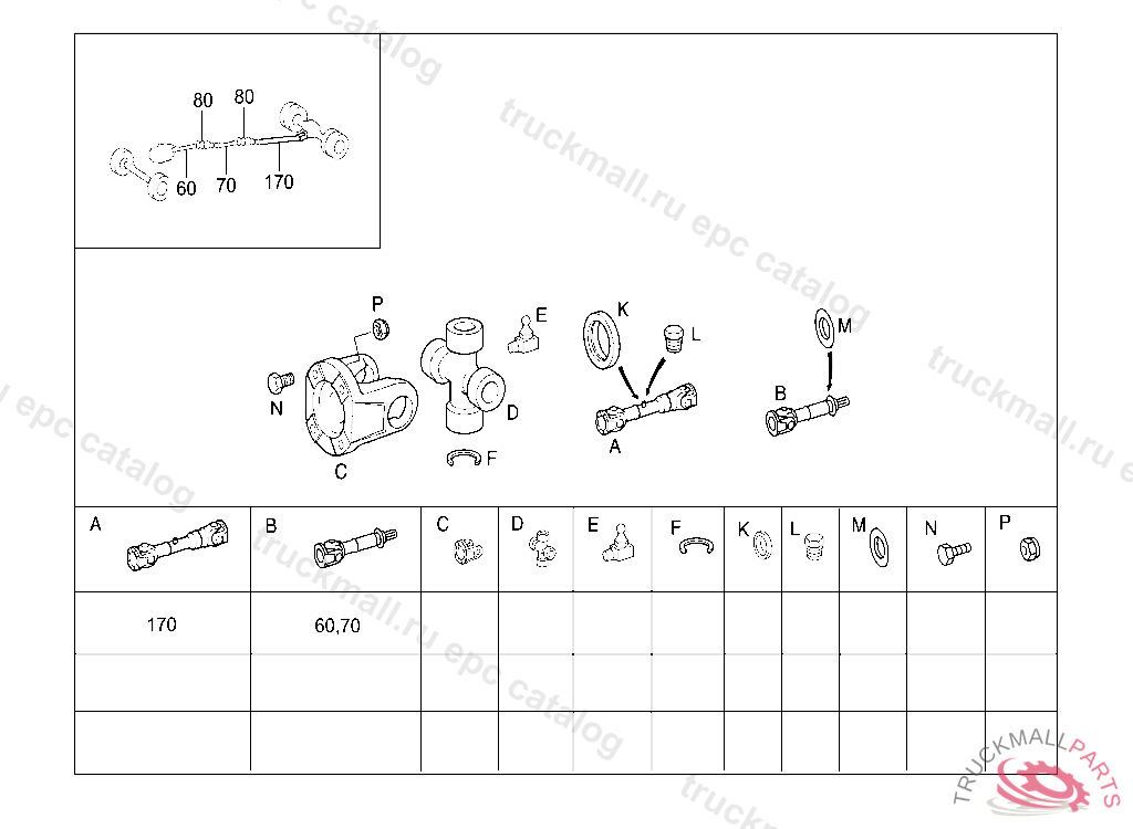 PROP. SHAFT WITH BEARING FROM TRANSMISSION TO INTERMEDIATE BEARING 770MM, FOR COMPONENT PARTS SEE SPARE PARTS LIST