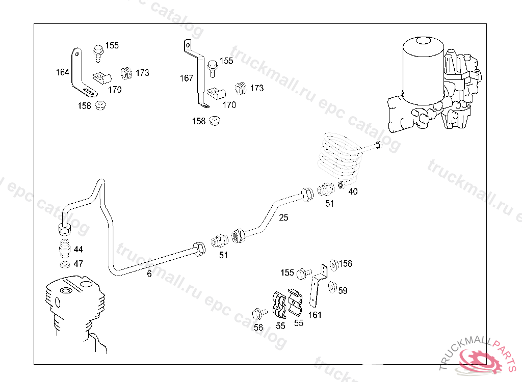 CONNECTOR AT AIR COMPRESSOR, USED WITH HYDRAULIC BRAKE,UP TO CHASSIS 588185
