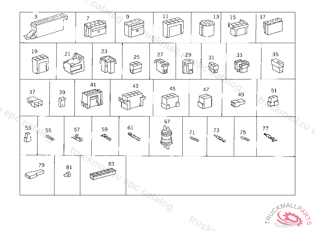 PIN BUSHING HOUSING. PLUG HOUSING FROM CHASSIS/CAB CONNECTION POINT TO TACHOGRAPH