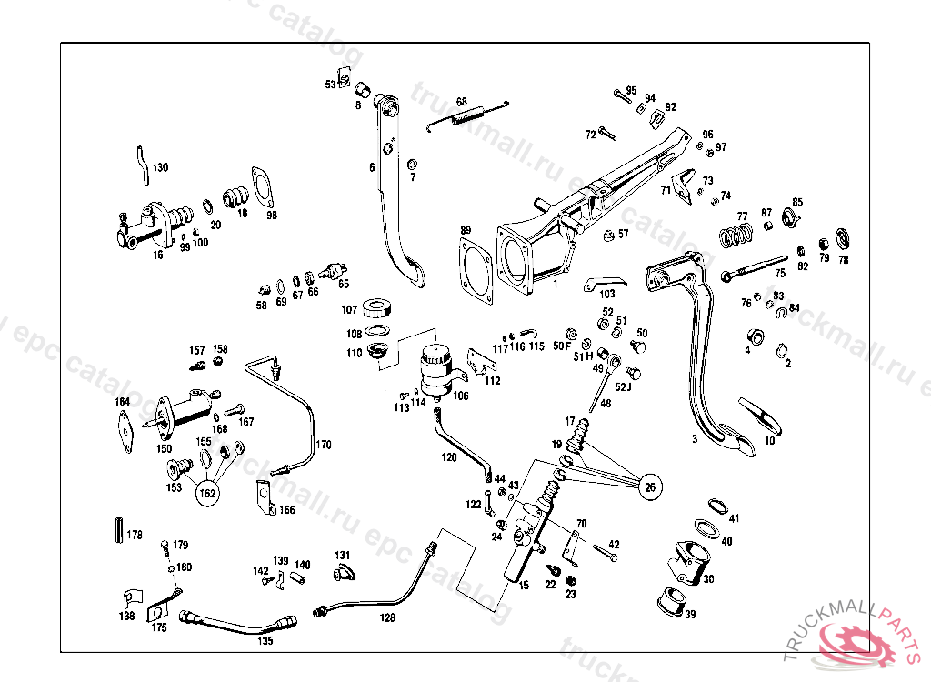 LINE FROM CLUTCH HOSE TO CLUTCH SLAVE CYLINDER, FROM CHASSIS: 000,002,010 089164 015 105337 100,102,103,110,112 262248 115 112353 005,017,105,107,108,117,119 000001 UP TO CHASSIS: 005,017 003779 105,107,108,117,119 004645