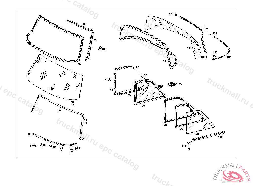 WINDSHIELD , UP TO CHASSIS: 114569, EXCEPT FOR: 114138,114139,114215,114398,114423,114472,114476-114478,114480-114482,114484,114486,114487,114489, 114492,114493,114495,114498,114500,114501,114503,114506,114512,114514,114515,114517,114519,114521, 114523,114525,114527,114529-114534,114536-114540,114543,114544,114546,114551,114553,114556,114558- 114567. ALSO INSTALLED ON: 115036, Replaced By: A1156710110