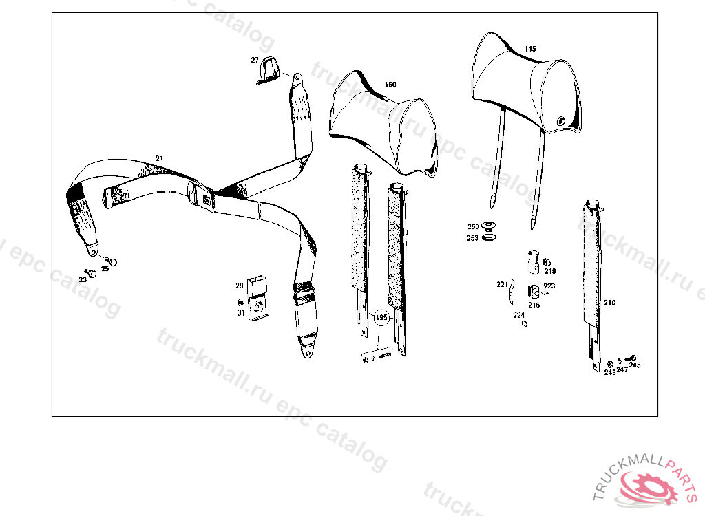 HEADREST , EXHAUST STOCK OF OLD PARTS UP TO CHASSIS:SEE FOOTNOTES 006,048,049,004,009,015, Replaced By: A1089705850