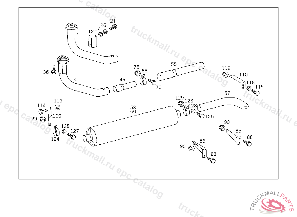 EXHAUST MUFFLER WITH PIPE ,696639, Replaced By: A3454908001, +001A3454928102, +001A3454927904