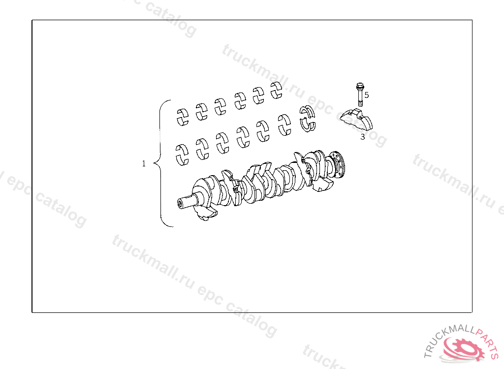 CRANKSHAFT WITH CRANKSHAFT BEARING SHELLS AND CONNECTING ROD BEARING SHELLS