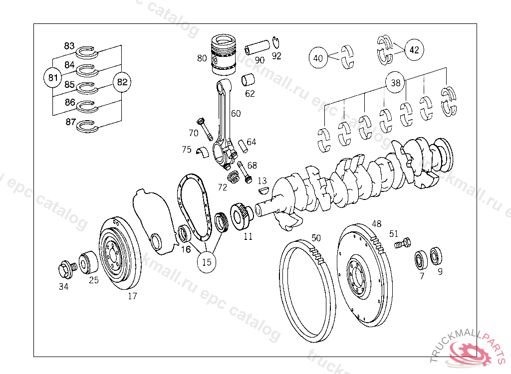 CRANKSHAFT BEARING MAIN BEARING PARTS KIT,FITTING SIZE 0,50