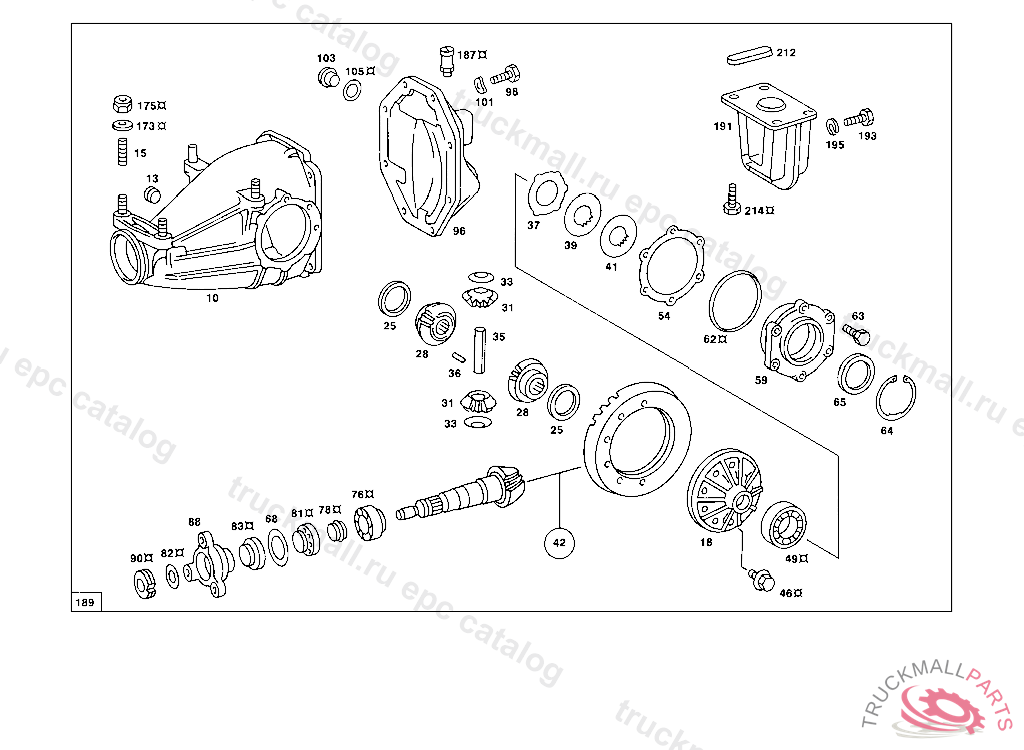 TAPERED ROLLER BEARING RING GEAR BEARING, REAR AXLE HOUSING WITH DIFFERENTIAL AND WITH SIDE BEARING CAPS 003 103238 007 087550 086 007105 093 008991 102,103 240182 105 231728 183 015394 190 021956 193 002092 200 027294 280 000776 283 003631