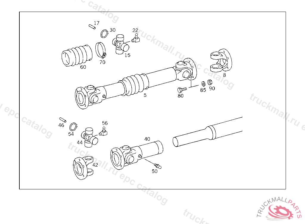 PROPELLER SHAFT FROM TRANSMISSION TO REAR AXLE 738 MM, USED WITH HYDRAULIC BRAKE UP TO CHASSIS 209475 EXCEPT FOR 209273,209446,209461,209465,209471,209474.