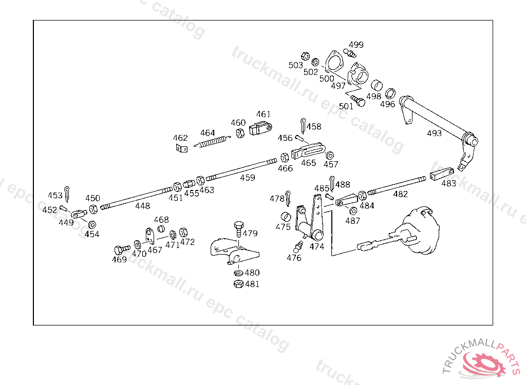 PULL ROD FROM CABLE TO TURNBUCKLE, USED WITH HYDRAULIC BRAKE UP TO CHASSIS 209475 EXCEPT FOR 209273,209446,209461,209465,209471,209474.