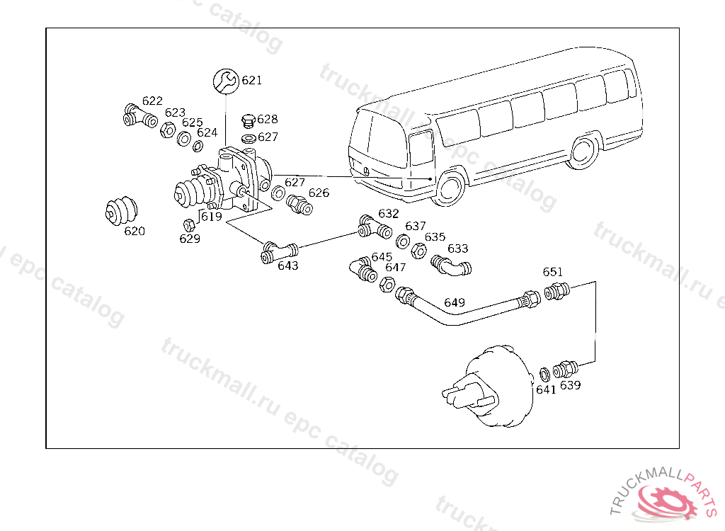 LINE FROM AIR RESERVOIR I TO FITTING NO.1, USED WITH HYDRAULIC BRAKE UP TO CHASSIS 209475 EXCEPT FOR 209273,209446,209461,209465,209471,209474.