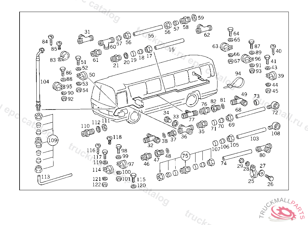 LINE FROM ELBOW FITTING TO AIR RESERVOIR NO.1, USED WITH HYDRAULIC BRAKE UP TO CHASSIS 209475 EXCEPT FOR 209273,209446,209461,209465,209471,209474.