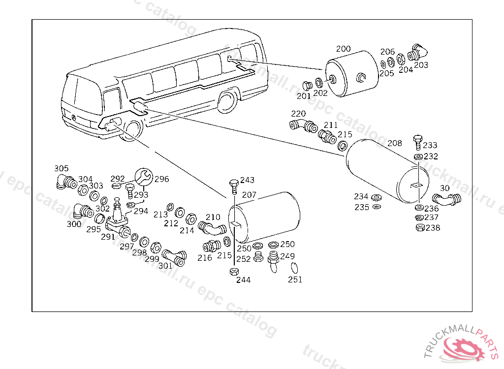 LINE FROM ELBOW FITTING TO AIR RESERVOIR NO.1, USED WITH HYDRAULIC BRAKE UP TO CHASSIS 209475 EXCEPT FOR 209273,209446,209461,209465,209471,209474.