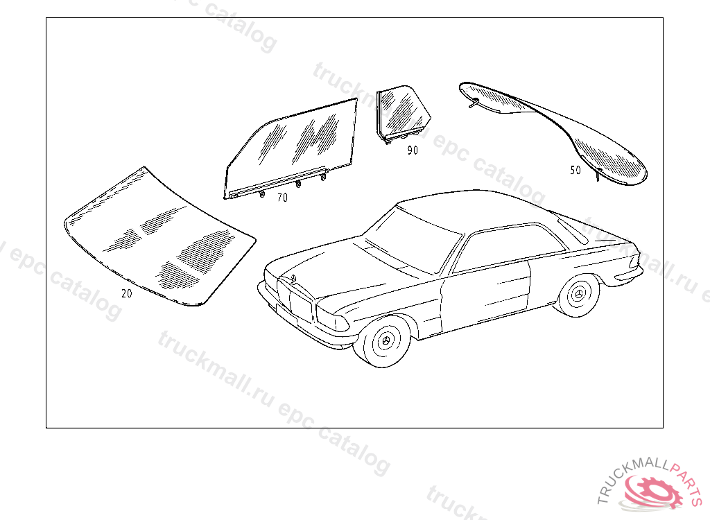 CRANK OPERATED WINDOW RIGHT FRONT DOOR, FROM CHASSIS 123.043 009141 123.050 002669 123.053 012246