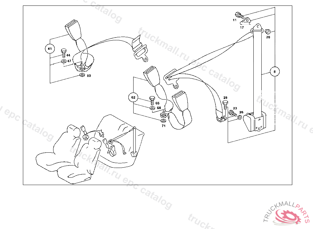 SAFETY BELT LESS LOCK, REAR SEAT,OUTSIDE LEFT AND RIGHT REPA