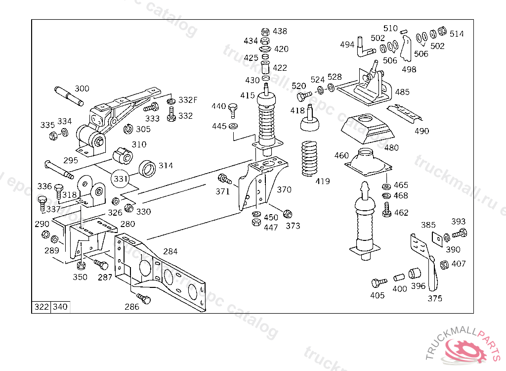 REPAIR KIT CAB SUSPENSION,FRONT, FOR USE WITH SHORT MERCEDES-BENZ CAB5 764324