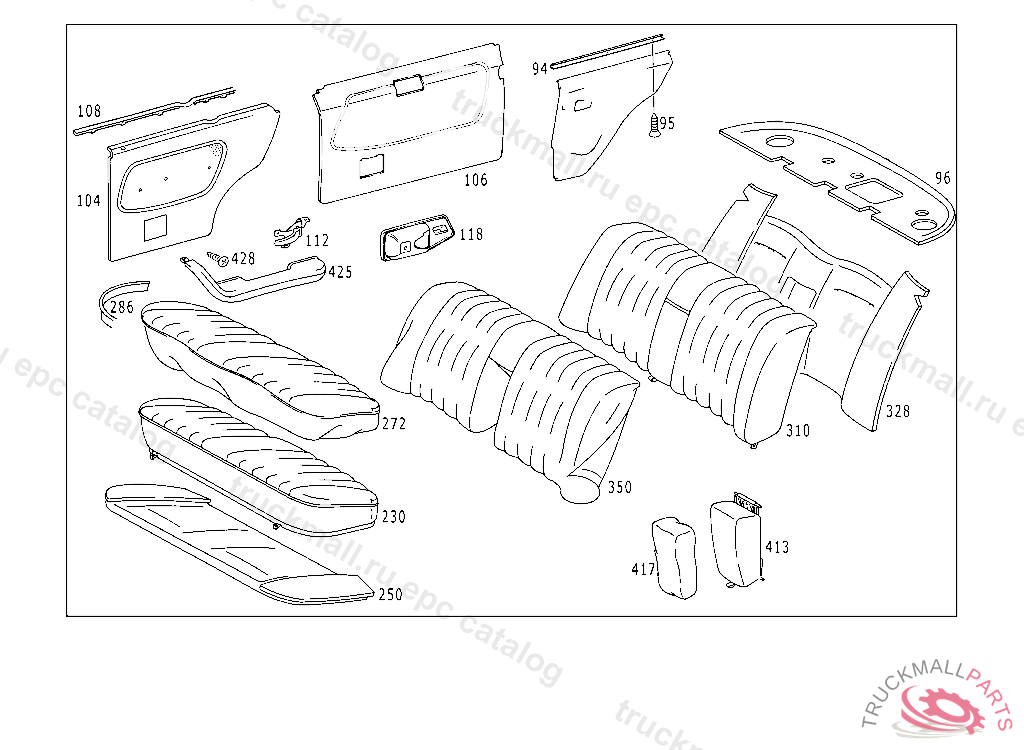 SEAT CUSHION REAR SEAT, UP TO CHASSIS123.028 054306 123.125 086883 123.132 109837 NO.9007 INO.5045 INO.8261 INO.8262 INO.8263 INO.6070 I I