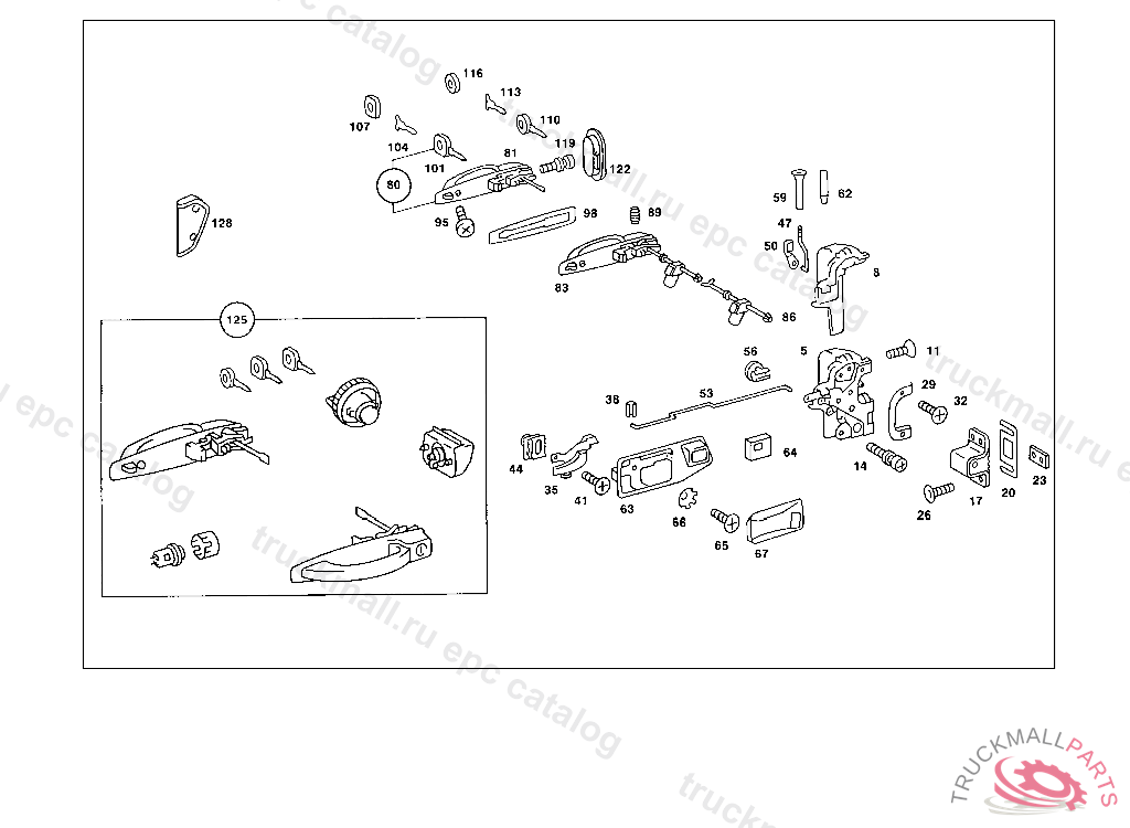 DOOR HANDLE LEFT,WORKSHOP VERSION,WITH KEY,ANY LOCK, 003 108193 007 095970 086 007384 093 010188 102,103 282247 105 257002 183 018165 190 023810 193 005891 200 064146 280 002522 283 007421 083 UNTIL PRODUCTION STOP