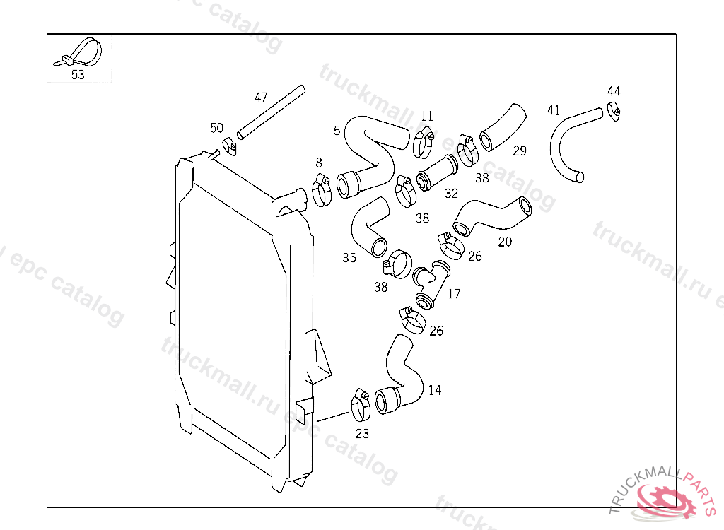 LOOM TIE COOLING WATER HOSE TO THERMOSTAT 51-64