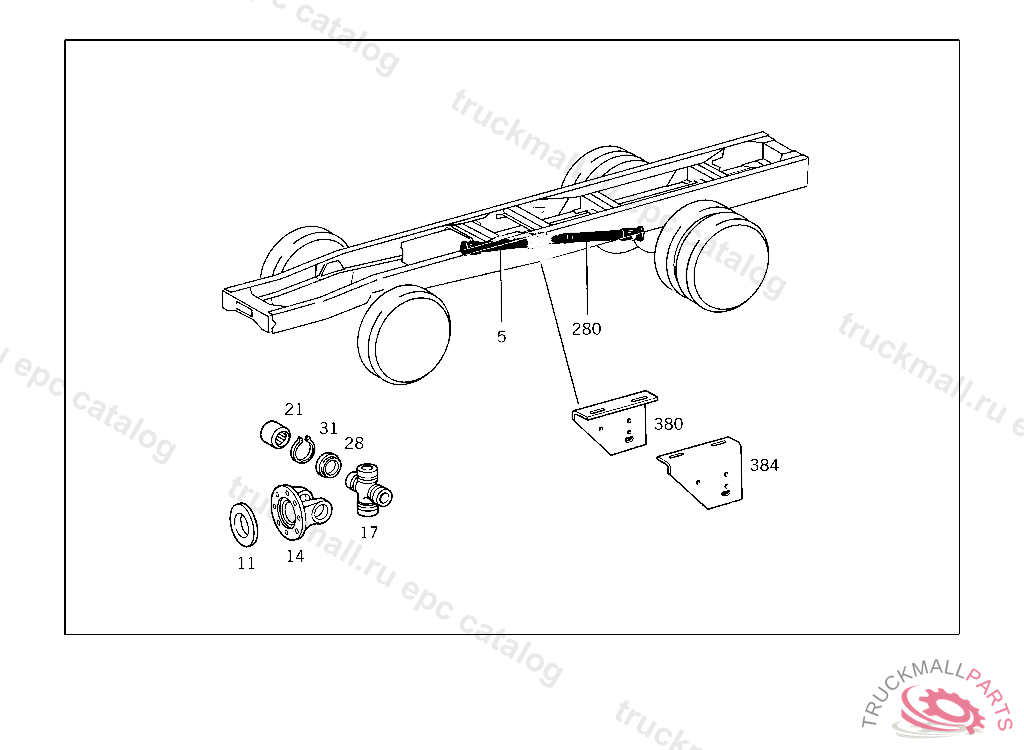PROPELLER SHAFT FROM TRANSFER CASE TO REAR AXLE 1290 MM,4 389954 BEARING BUSHING O..D.,38 MM