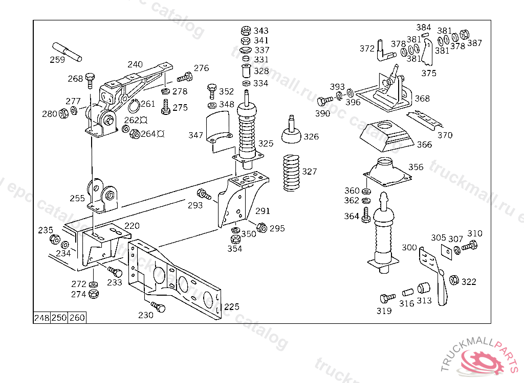 CONSOLE VIBRATION ABSORBER TO FRAME, 385.068,069 ON VEHICLES WITH DB CAB ONLY 385.019 FOR USE WITH SHORT MERCEDES-BENZ CAB5 204965