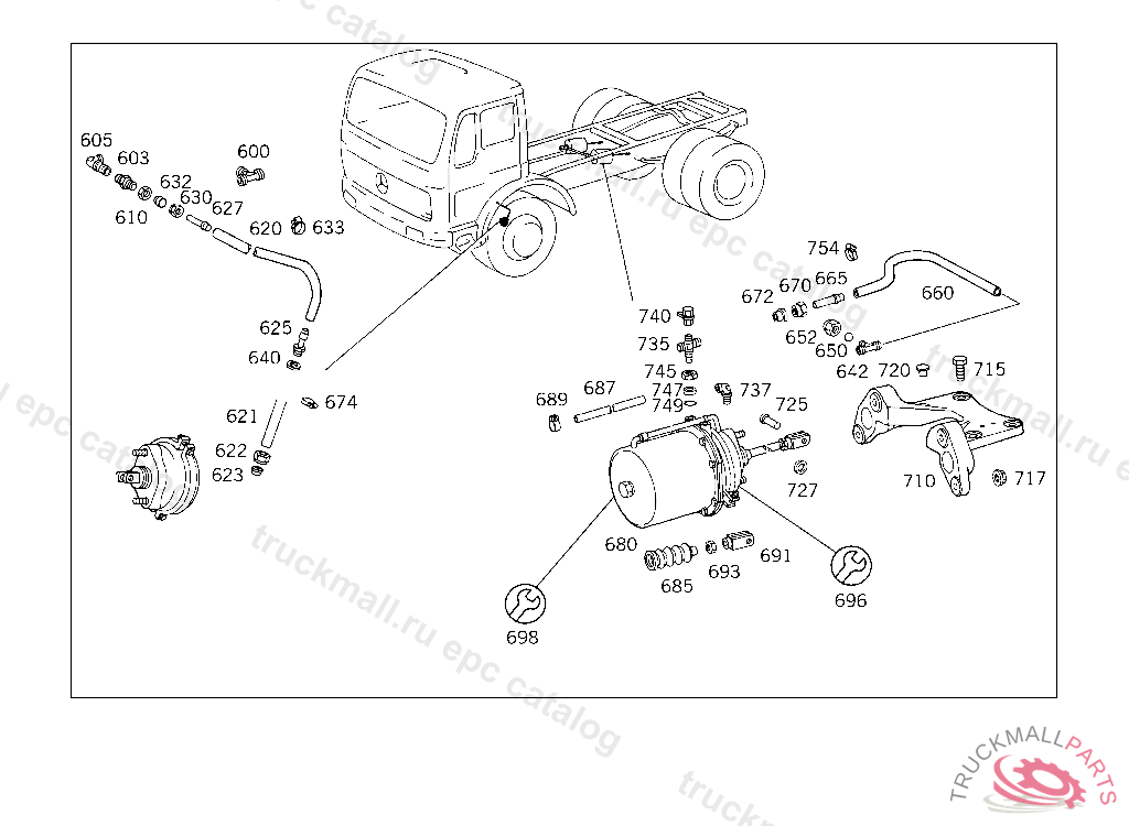 REPAIR KIT DIAPHRAGM CYLINDER TO 006 420 05 18, FROM AXLE 213195,UP TO AXLE 213194 SEE SPARE PARTS LIST 740.104