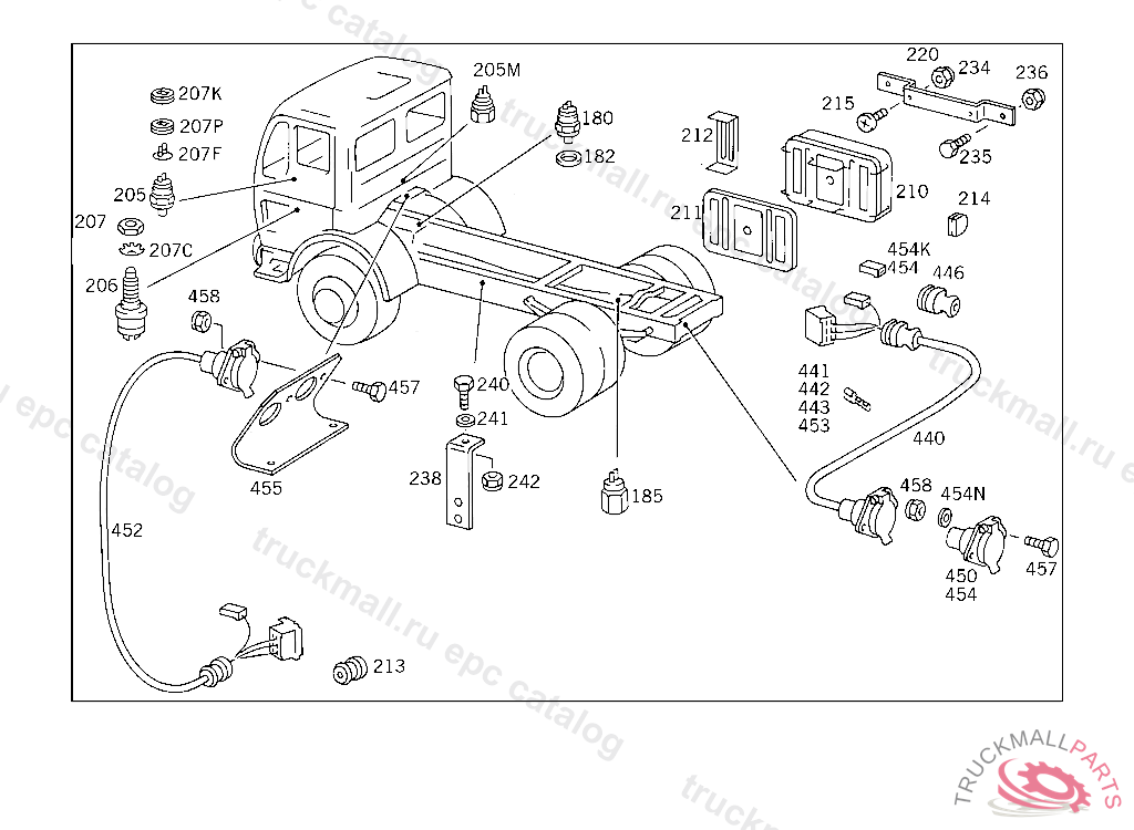 ELECTRIC CABLE FROM CHASSIS/CAB TO FRONT LONGITUDINAL DIFFERENTIAL LOCK CONTROL,5 1802665 220080