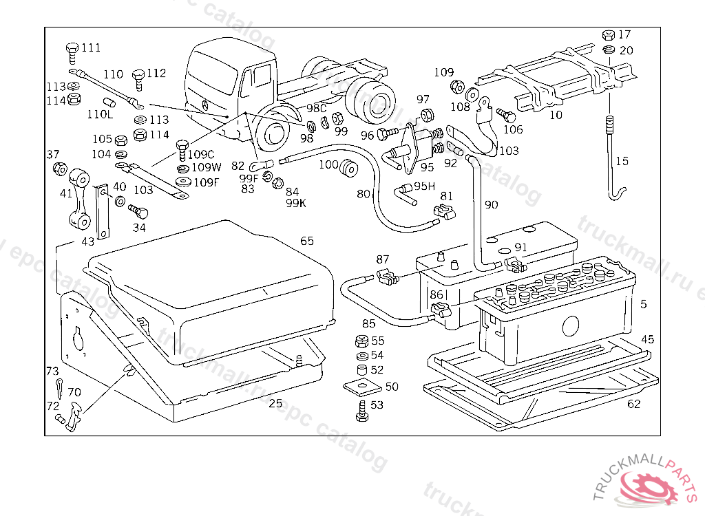 FRAME BATTERY MOUNTING, 10/20 UP TO CHASSIS 4 347 646,50/60 UP TO CHASSIS 4 345 731